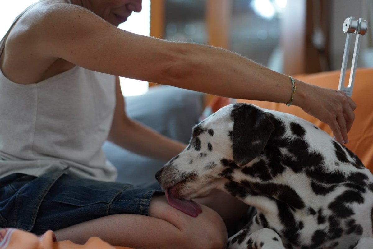 Un mélange de massage et de diapasons pour apaiser nos amis poilus, et les libérer de leurs douleurs.